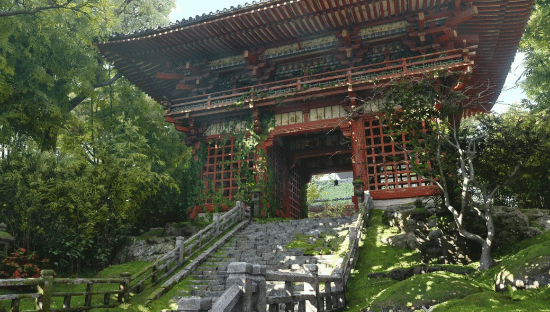 另外, 游戏采用了育碧先进的Atmos天气系统,能够根据湿度和温度等因素模拟动态的风和天气变化。结合新的物理系统,游戏世界将更加互动,例如角色的发丝会随风飘动,树木的枝干也会独立摇曳。另外,玩家还可以精确地切割竹子、织物和薄门等多种物体,断裂点与碰撞模型完美匹配。游戏采用了类似于虚幻5 Nanite技术的微多边形几何体,能够在保持极高物体细节的同时,消除岩石和建筑物等刚体资产的细节层次(LOD)切换问题。
