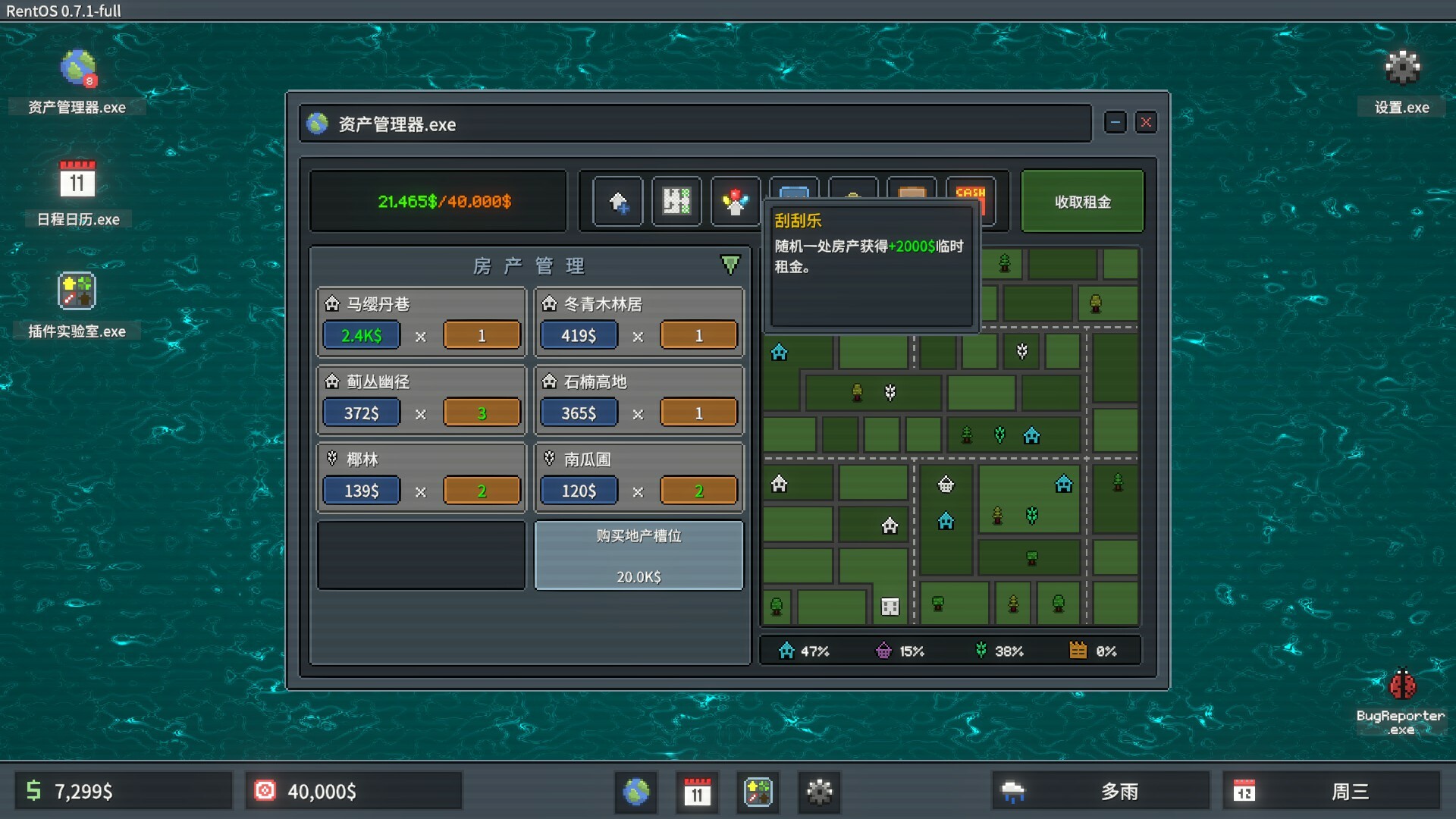 在《超级包租公》这款融合肉鸽元素的连招式炒房模拟器中,你既是资本棋手也是商业鬼才。收购楼房、盘活资产、智破每周刷新的税收条例——利用房产插件打造租金连击链,在每次轮回中暴力收租,花式赚钱!
